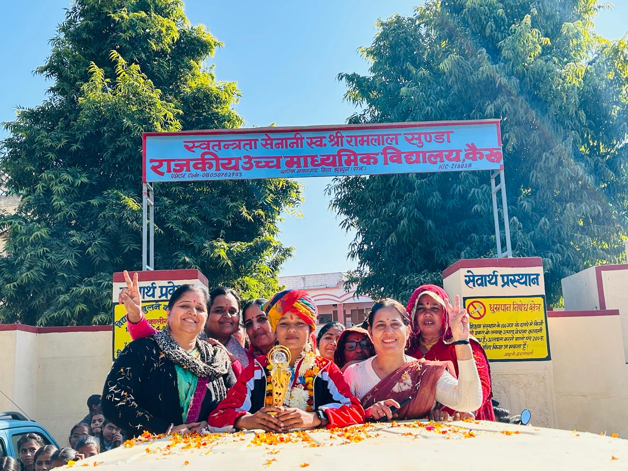 झुंझुनू राष्ट्रीय फुटबॉल प्रतियोगिता में भाग लेकर अपने पैतृक गांव कैरू लौटी प्रतिभावान खिलाड़ी गरिमा मीणा का ग्रामीणों ने गर्मजोशी से स्वागत किया। गरिमा, कैरू के स्वतंत्रता सैनानी रामलाल सुंडा राजकीय उच्च माध्यमिक विद्यालय की छात्रा हैं और उन्होंने 18 से 22 दिसंबर 2025 तक झारखंड की राजधानी रांची में आयोजित नेशनल फुटबॉल प्रतियोगिता में राजस्थान की टीम का प्रतिनिधित्व किया।