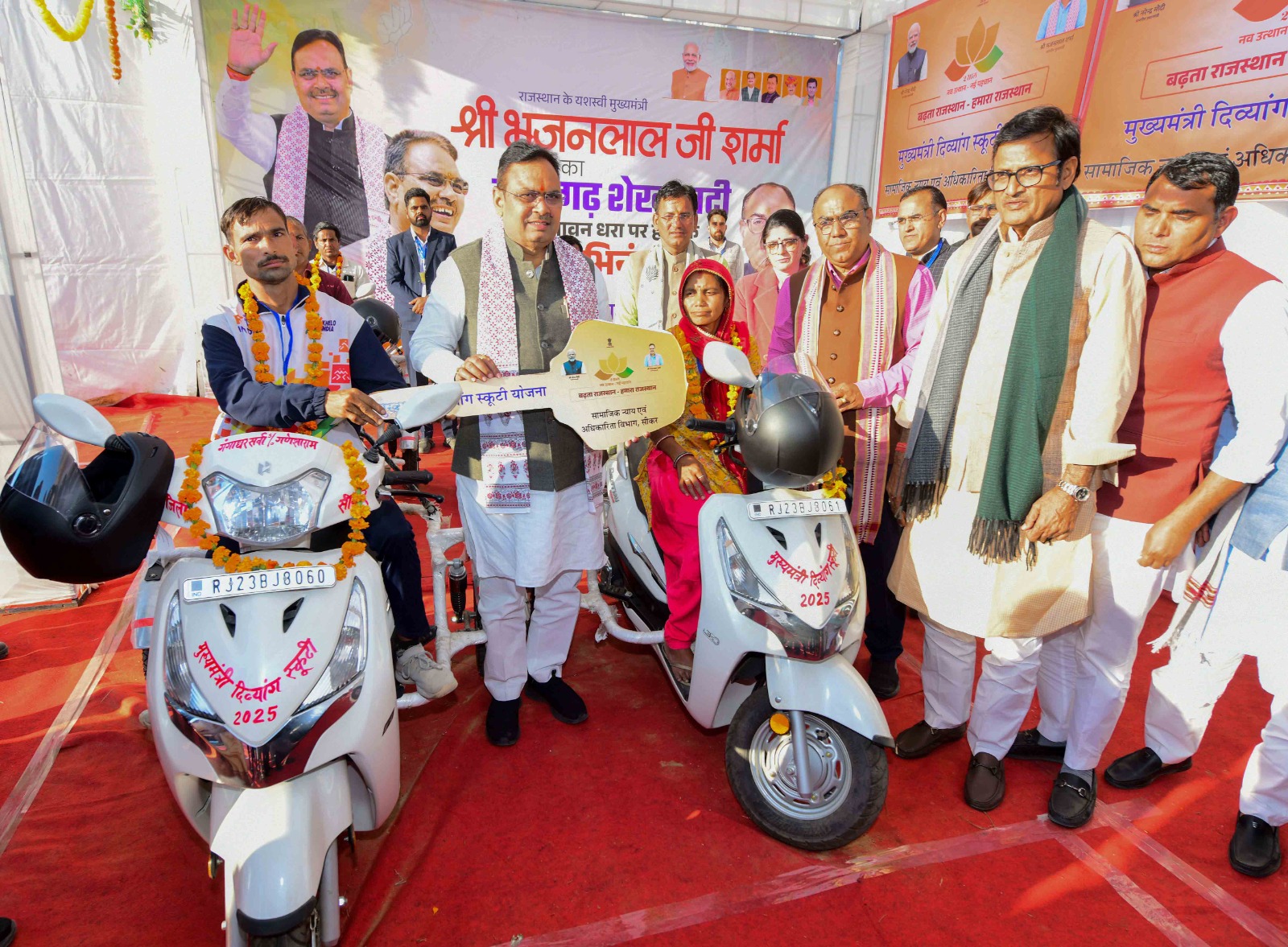 कार्यक्रम के दौरान मुख्यमंत्री ने मुख्यमंत्री दिव्यांग स्कूटी योजना के अंतर्गत लाभार्थियों को स्कूटी वितरित की तथा जिला प्रशासन द्वारा लगाई गई प्रदर्शनी का निरीक्षण किया।
